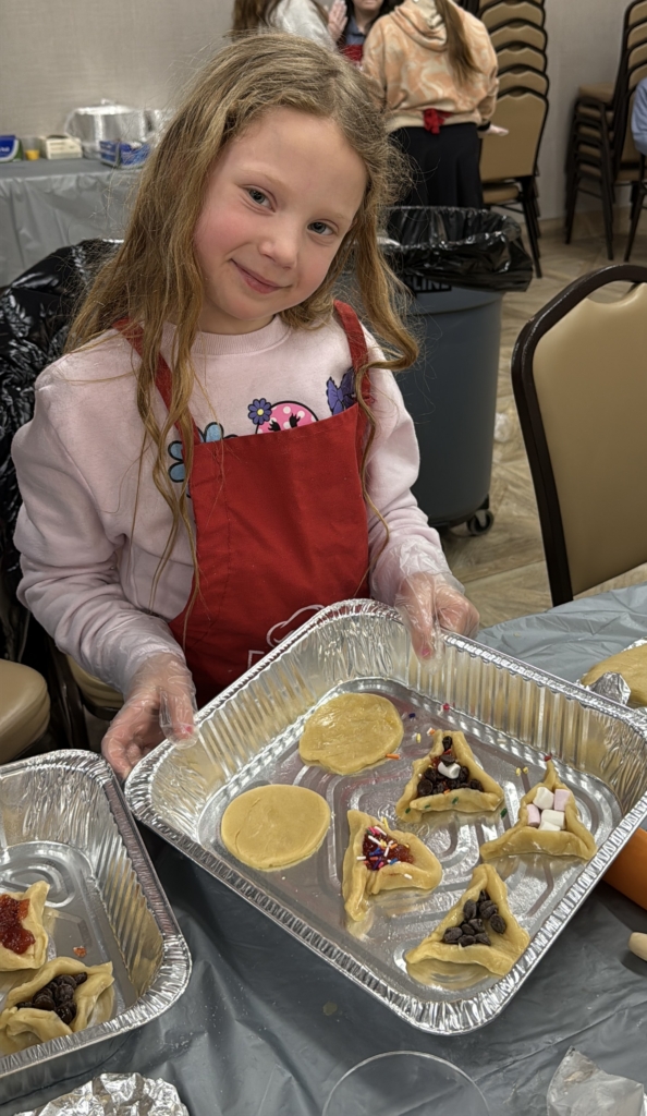 At the conclusion of the event, beautiful Purim baskets were distributed, filled with sweet treats, popcorn, a mezuzah case, and of course, hamantash.